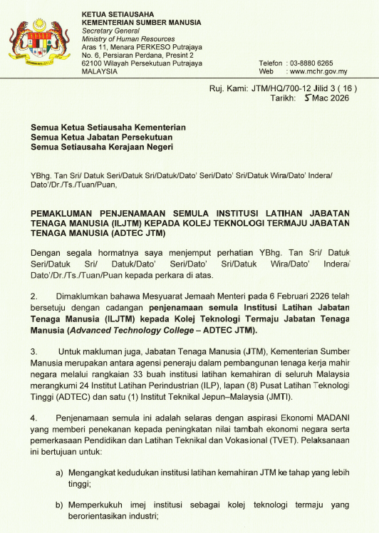 Senarai pengumuman terkini yang dikeluarkan oleh pihak ADTECKT